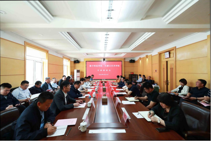 座谈会上,刘前贵代表内蒙古艺术学院对朱玉东书记一行的到访表示热烈欢迎,朱玉东对内蒙古艺术学院多年来对集宁师范学院的关注、支持和帮助表示衷心的感谢。会上,黄海和朱玉东分别介绍了各自学校的发展历史和学校办学情况,并围绕党的建设、教学科研、队伍建设、学校高质量发展、办学层次提升等方面进行了深入交流。