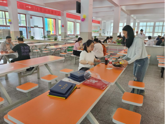 餐厅装点一新,把毕业生离校的日子当做最盛大的节日过,气球、彩灯、签名墙,离别中装点了祝福。