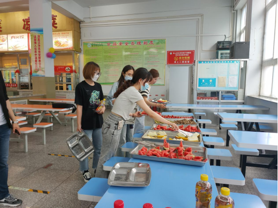 餐厅还给学子们精心准备了室外消夏休闲茶座,摆放了免费的夜宵、果品、花生、毛豆。