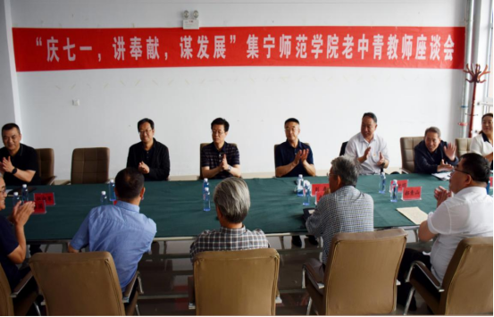 “庆七一,讲奉献,谋发展”座谈会在庄重热烈的气氛中进行,老中青教师代表热情洋溢积极发言。