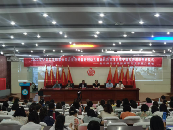 7月4日上午,教育部2022童语同音计划民族地区农村幼儿园教师国家通用语言文字能力培训,集宁师范学院培训班开班仪式在集宁师范学院图书馆报告厅举行。集宁师范学院国家语言文字推广基地主任、副校长李景杰;乌兰察布市教育局党组成员、副局长刘淑敏;鄂尔多斯市教育体育局党组成员、鄂尔多斯市教育事业发展中心主任哈达;鄂尔多斯市教育事业发展中心副主任苏翠玲;鄂尔多斯市教育事业发展中心语言文字应用科科长崔淑桃;副科长项红梅;乌兰察布市语言文字应用推广中心主任许钢;副主任宝力道;培训专家吴豫安、曹宇教授;集宁师范学院继续教育学院院长侯素馨;培训项目“一对一”辅导教师、培训班班主任、全体参训学员参加了开班式。开班式由集宁师范学院国家语言文字推广基地副主任张一弘主持。