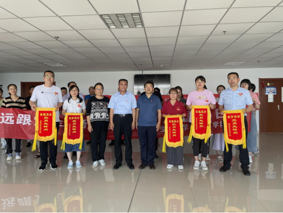 李景杰宣布获得党员先锋岗党员名单,并为获奖者颁发锦旗。学院党总支书记夏学利和院长任琴为获奖者发放并佩戴党员先锋岗胸章。先锋岗党员们进行了承诺宣誓。随后,李景杰同志就我院师范专业认证工作进行了指导。
