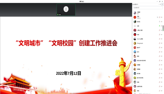 7月12日上午,集宁师范学院通过腾讯会议线上召开“文明城市”“文明校园”创建工作推进会,校党委副书记刘春,党委委员、宣传部长张富,各部门、学院创建工作负责人,各创建工作组有关成员参加会议,党委宣传部副部长田博主持会议。
