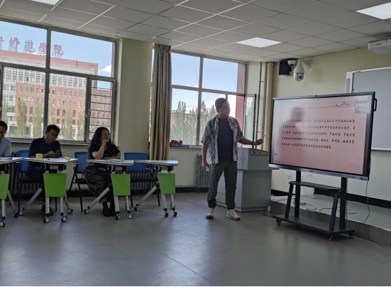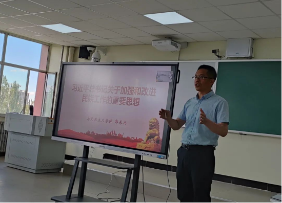 为深入学习贯彻习近平总书记关于加强和改进民族工作的重要思想和对内蒙古重要讲话重要指示批示精神,以铸牢中华民族共同体意识为主线开展民族工作,充分发挥思政课铸魂育人主渠道作用,根据自治区民委、自治区教育厅《关于举办全区大中小学思政课铸牢中华民族共同体意识课程教学大赛的通知》精神和集宁师范学院《关于迎接党的二十大胜利召开,组织开展“青春献礼二十大,强国有我新征程”主题宣传教育活动的通知》精神,8月25日,集宁师范学院举办“青春献礼二十大·强国有我新征程”铸牢中华民族共同体意识课程教学大赛。大赛由集宁师范学院教务处、马克思主义学院承办,质评处协办。校党委副书记、校长刘春,党委委员、副校长李景杰线上出席了本次大赛,教务处副处长孟美英,质评处教师江星月、苏琰儒、督导员池小平、田振国,马克思主义学院党总支副书记胡志胜、院长杨明霞参加,马克思主义学院全体教师线上线下全程观摩。比赛由马克思主义学院副院长段文智主持。