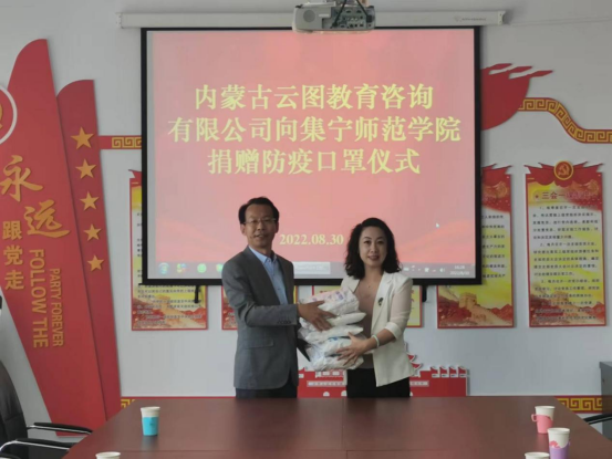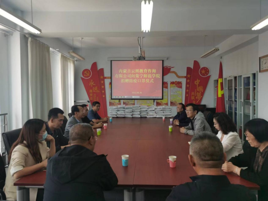 8月30日下午,内蒙古云图教育咨询有限公司向集宁师范学院图书馆捐赠5000只医疗防疫口罩,协助图书馆做好当前疫情防控工作。捐赠仪式在图书馆五楼党员活动室举行,校党委委员、副校长梁政、图书馆负责人武俊芳、以及部分科级干部参加此次捐赠活动。