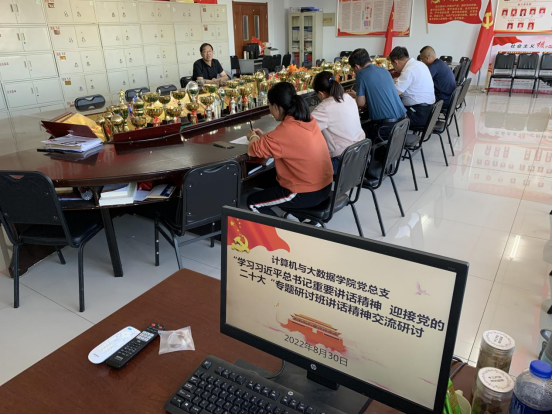 根据学校党委《关于组织学习贯彻习近平总书记在省部级主要领导干部“学习习近平总书记重要讲话精神 迎接党的二十大”专题研讨班上的重要讲话精神的通知》(集师党发〔2022〕106号)精神,计算机与大数据学院党总支理论学习中心组于8月30日专题了学习习近平总书记系列重要讲话精神并开展交流研讨。校党委委员、副校长梁政到会巡听旁听,会后,调研了学院半年来工作情况。