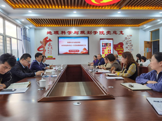 9月21日,集宁师范学院党委书记朱玉东,党委委员、统战部部长张秀文,党政办公室副主任郭英,宣传部副部长田博一行深入地理科学与规划学院调研指导“最强党支部”建设工作。学院全体无课教师参会。
