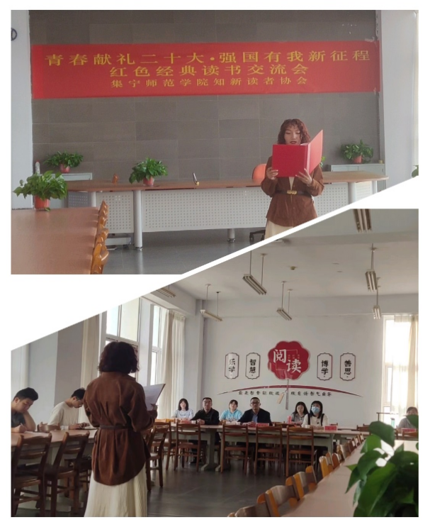 为庆祝中华人民共和国成立73周年,迎接党的二十大胜利召开,9月29日,集宁师范学院知新读者协会在泉山校区图书馆四楼报刊阅览室,组织举办了以“青春献礼二十大 强国有我新征程”为主题的红色经典读书交流会,旨在激发我校师生共读的浓厚氛围,推动广泛阅读红色经典的深入开展。校团委副书记王晓瑭,校团委组织宣传部部长曹晔应邀参加本次活动。