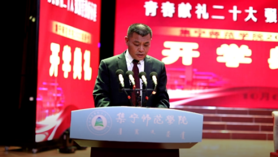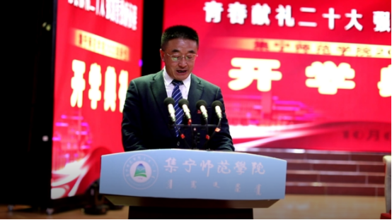 刘春在开学典礼上,代表学校全体师生员工,向4400余名新同学的到来表示最热烈的欢迎!恭喜大家加入集宁师范学院,开启人生新篇章。他围绕办学历史、发展目标、“12345”发展思路及校内综合改革等方面内容对学校进行了全面介绍,并向全体师生提出三点希望:一是希望大家志存高远,胸怀“国之大者”,逐梦伟大理想,谱写新的乐章。希望同学们通过树立远大目标,拉满前进的风帆,无论路途多遥远、波涛多汹涌,都能心无旁骛、一往无前。希望大家继承集师人的优良传统,自觉把个人的小目标融入到实现国家富强、民族振兴、人民幸福的伟业中,在不断跨越中,成就对国家有贡献、对社会有价值的人生;二是希望大家勤奋学习,完善自我,练就勇挑时代重任的本领。要把学习当做第一要务,重视学习,加强学习,善于学习,秉承“勤学进取 求实笃行”的求学精神,掌握适应教育变革的自主学习方法,建构广博精深的知识体系,深入探究科学之真、人文之善、艺术之美,为人生之路行稳致远奠定坚实基础;三是希望大家求实创新,锐意进取,锻造探求真知的过硬本领。作为最富活力、最具创造性的青年群体,每位同学在治学道路上都应该敢于质疑、敢于探索、敢于突破,用足够的耐心和坚挺的韧劲把学习推向创新。最后刘春校长祝福新同学在集师历练成长、不断进步,在强国之路上奋力奔跑,在复兴伟业中挺立潮头,跑出新一代集师青年的最好成绩。