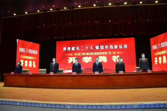 10月6日,集宁师范学院2022级新生开学典礼在逸夫楼报告厅以线上线下相结合的方式隆重举行。校党委书记朱玉东,党委副书记、校长刘春,党委委员、副校长梁政,党委委员、纪委书记、监察专员赵永军,党委委员、副校长李景杰,党委委员、宣传部部长张富,党委委员、统战部部长张秀文出席开学典礼,各部门主要负责人(含主持工作)、各二级学院书记、院长(含主持工作)、附属中学主要负责人、辅导员、新生班主任、在校生代表以及2022年全体新生参加开学典礼。开学典礼由李景杰主持。