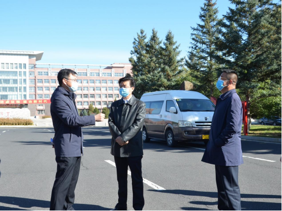 10月6日,乌兰察布市教育局局长李凤双一行深入我校检查指导疫情防控工作。校党委书记朱玉东,党委副书记、校长刘春,党委委员、副校长李景杰及相关职能部门负责人陪同。