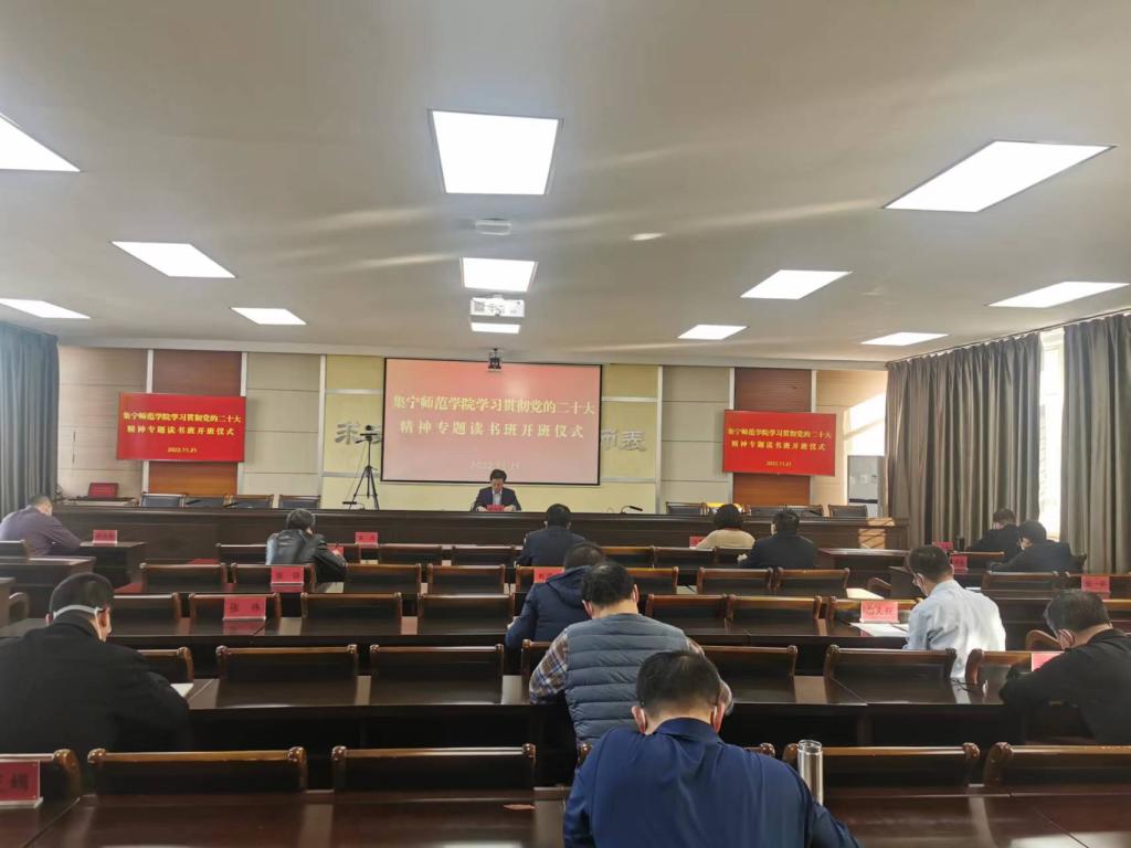 11月21日,集宁师范学院学习贯彻党的二十大精神专题读书班开班仪式在泉山校区行政楼五楼会议室举行。党委书记朱玉东主持开班仪式并作动员讲话,党委副书记梁政,党委委员、统战部长张秀文,有关党政部门、二级学院主要负责同志参加开班仪式。