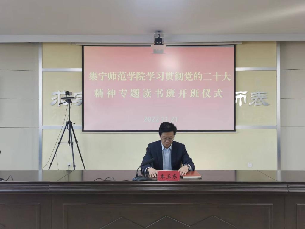 朱玉东作开班讲话,对学校开展学习贯彻党的二十大精神专题读书班进行动员部署。朱玉东表示,举办集宁师范学院学习贯彻党的二十大精神专题读书班是学校党委按照习近平总书记关于学习贯彻党的二十大精神“五个牢牢把握”的重要要求,为全面准确学习领会党的二十大精神作出的一项重要安排,目的是动员全校党员干部自觉把思想和行动统一到党的二十大精神上来,把力量凝聚到党的二十大确定的各项目标任务上来,以昂扬的精神状态、务实的工作作风,团结带领全校师生奋力开创集宁师范学院各项事业高质量发展新局面。