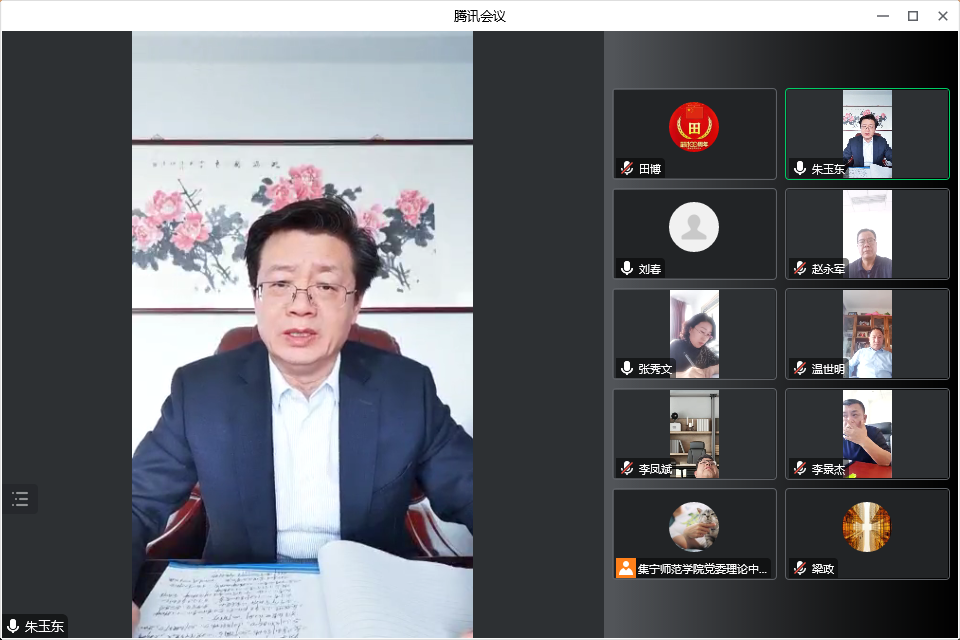 按照集宁师范学院学习贯彻党的二十大精神专题读书班暨校党委理论学习中心组(扩大)2022年第16次集体学习的工作安排,11月23日上午,校党委理论学习中心组通过腾讯会议开展学习贯彻党的二十大精神专题交流研讨会。校党委书记、党委理论学习中心组组长朱玉东主持会议,党委中心组全体成员、副校长李凤斌参加会议。