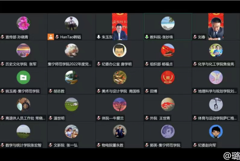 根据自治区党委组织部《关于扎实有效开展2022年度党组织书记抓基层党建述职评议考核工作的通知》和自治区教育工委《关于开展2022年度高校党组织书记抓基层党建述职评议考核工作的通知》精神,我校按照《中共集宁师范学院委员会2022年度党组织书记抓党建述职评议考核工作方案》要求,于12月23日以线上方式召开2022年度党组织书记抓党建述职评议考核会,述职采用两种方式进行,各党总支书记进行现场述职、各直属党支部书记采取书面方式述职。校党委书记朱玉东主持会议并作点评发言和总结讲话,全体校领导、党委委员,各党总支书记、直属党支部书记、各部门主要负责同志,人大代表、政协委员、党员群众代表参加会议。