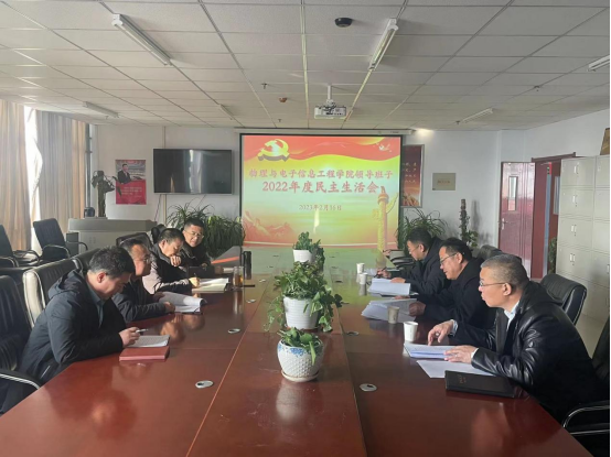 2月16日,物理与电子信息工程学院领导班子2022年度民主生活会在逸夫楼809会议室召开,第五督导组组长李瑞俊,成员张军儒、联络员张荟到会指导,校党委委员、纪委书记赵永军出席并巡听。会议由学院党总支书记董永胜主持,学院领导班子全体成员参会。