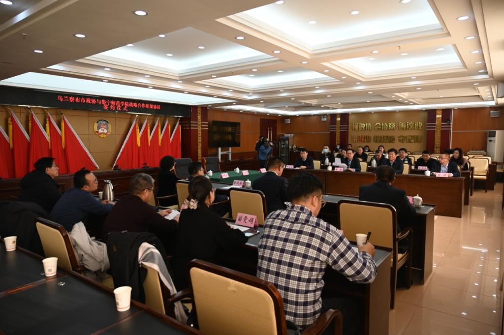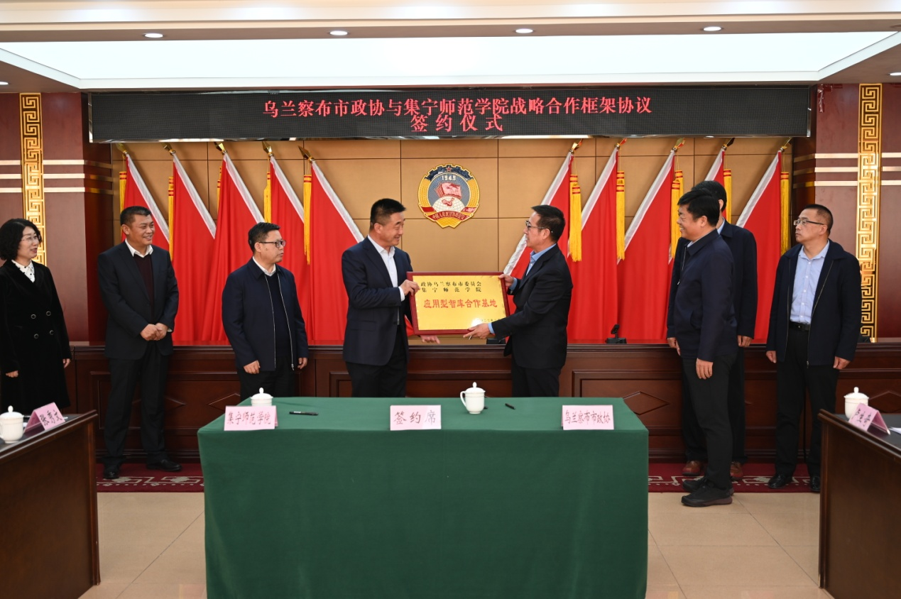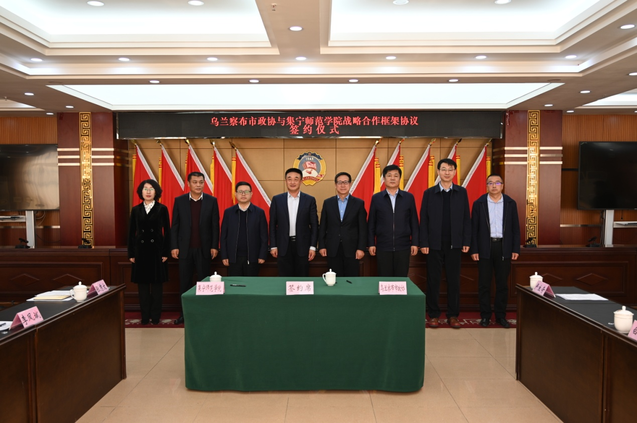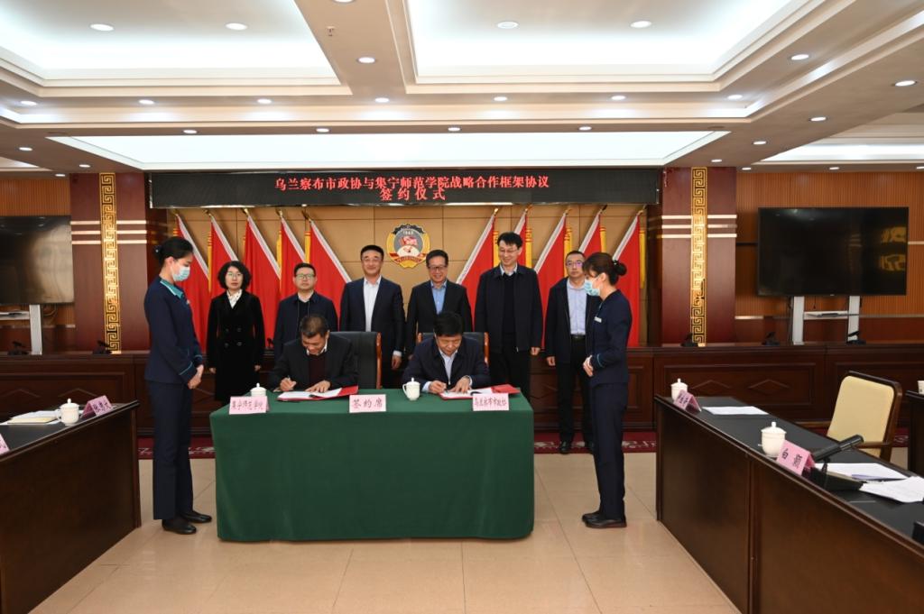 为深入学习宣传贯彻党的二十大精神,进一步加强校地之间的合作交流,2023年3月3日上午,本着“资源共享、优势互补、互利互惠、共同发展”原则,集宁师范学院与政协乌兰察布市委员会共同签署战略合作框架协议。市政协党组书记、主席白颢,市政协党组副书记、副主席杨印,市政协副主席卢生奇,市政协党组成员、秘书长杨源出席签约仪式。集宁师范学院党委副书记、校长刘春,副校长李凤斌,党委委员、副校长李景杰,党委委员、统战部长张秀文出席签约仪式。市政协党组书记、主席白颢主持签约仪式。