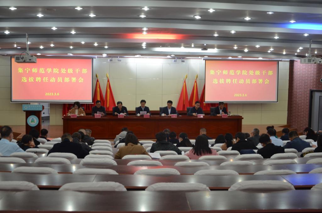 2023年3月6日下午,集宁师范学院于泉山校区图书馆报告厅召开处级干部选拔聘任动员部署会。全体校领导、党委委员,全校副处级以上领导干部参加会议。会议由党委副书记、校长刘春主持。