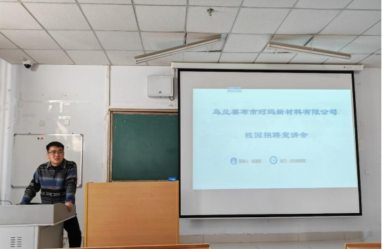 在2017年注册成功,地处内蒙古乌兰察布市察右后旗蒙维新材料工业园区的乌兰察布市珂玛新材料有限公司。应我院邀请,于3月6日,在逸夫楼105教室举办现场招聘会,2023届应用化学专业全体毕业生参加了本次招聘会。