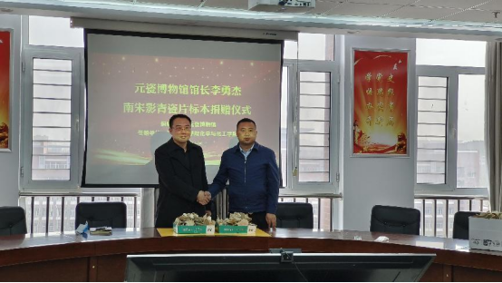 3月22日,元瓷博物馆馆长李勇杰一行来到我校化学与化工学院,捐赠了重达20斤的南宋影青瓷片样本。