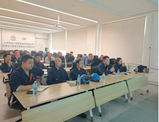 培训在丰镇产业园内蒙古三爱富万豪氟化工有限公司内举办,共有周边十多家化工类企业50余名员工参加。讲授过程中不断有员工与授课教师探讨,大家就生产中遇到的安全问题,防范急救措施,甚至是平时遇到的工艺生产难题都进行了深入讨论,现场授课氛围活跃。