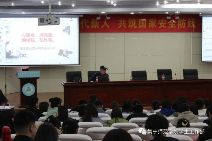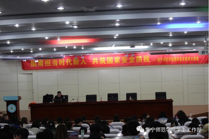 4月15日,集宁师范学院校园安全管理处、学生处在泉山校区图书馆报告厅联合举办“挺膺担当时代新人、共筑国家安全防线”国家安全教育系列讲座。集宁区公安分局国保大队忠恩乐、集宁区虎山派出所王凯应邀担任主讲。各二级学院师生代表400余人参加讲座。