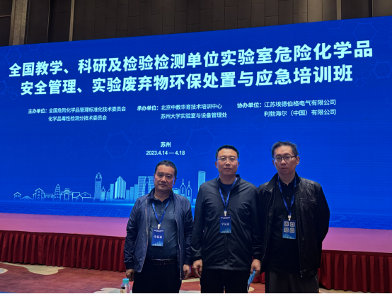 4月14日到4月18日,我校化学与化工学院副院长徐松鹤、办公室主任王志平、实验室主任吴海若,赴江苏苏州参加了“全国教学、科研及检验检测单位实验室危险化学品安全管理、实验废弃物环保处置与应急培训班”。培训由全国危险化学品管理标准化技术委员会和化学品毒性检测分技术委员会主办,北京市海淀区应急管理局副局长、教育部科研实验室安全技术组专家陈溥,苏州大学实验室与建设管理处处长魏永前,华中科技大学实验室与设备管理处处长李震彪等20多位专家对实验室的安全管理进行培训。