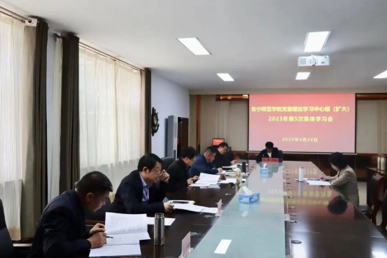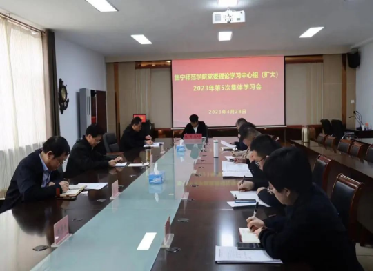 4月28日,集宁师范学院于泉山校区行政楼402会议室召开校党委理论学习中心组(扩大)2023年第5次集体学习会。党委理论学习中心组全体成员,全体校领导、党委委员,学校保密工作相关人员参会。会议由校党委书记、党委理论学习中心组组长朱玉东主持。