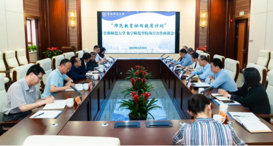 5月22日,集宁师范学院党委副书记、校长刘春,党委委员、副校长李景杰带队,就“师范教育协同提质计划”项目有关事项赴首都师范大学考察交流,相关部门、学院负责人陪同。首都师范大学校长方复全,党委常委、副校长李小娟出席交流会,相关职能部门负责人参加。