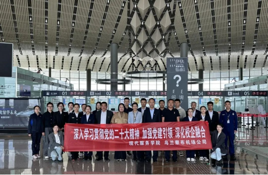 6月1日,我校现代服务学院赴乌兰察布机场公司开展访企拓岗专项行动,并联合举办以“深入学习贯彻党的二十大精神,加强党建引领,深化校企融合”为主题的党日活动。乌兰察布机场公司党委书记王瑞娟、总经理牛昌江,现代服务学院党总支书记李荣利、院长王汉君及学院党员同志参加了本次活动,活动由李荣利主持。