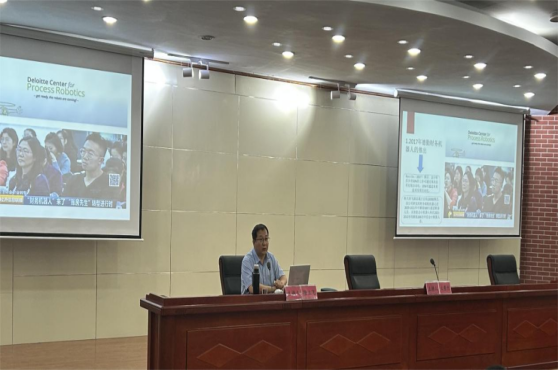 6月15日,内蒙古财经大学会计学院副院长,管理学博士,硕士生导师徐利飞教授在泉山校区图书馆报告厅为我校经济与管理学院师生作会计专业数智化转型路径分析专题讲座。我校经济与管理学院全体师生聆听讲座。讲座由经济与管理学院副院长么秀杰主持。