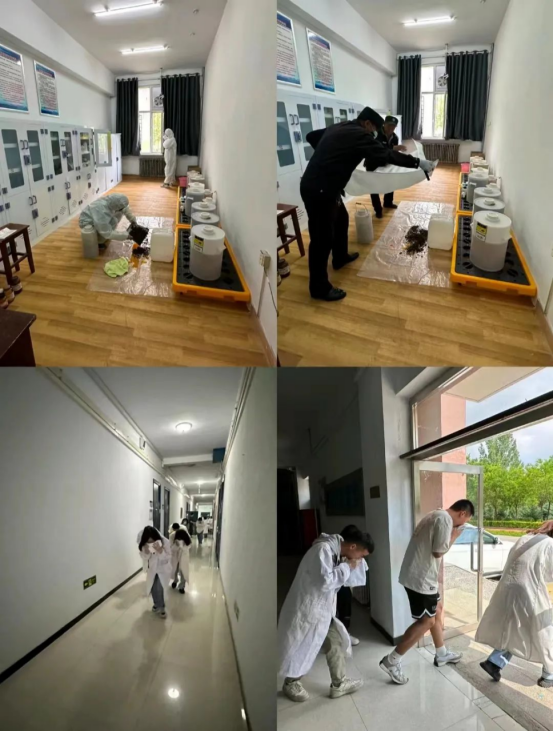 至此,实验室废液库中的废液桶漏液的应急演习圆满结束。通过这次应急演习,提高了学生和教师的安全意识,让大家进一步了解并掌握化学废液的处理流程,同时也提升了处理突发事件过程中的协调配合能力,为我们将来遇到突发情况的自我保护和应变、处理打下坚实的基础。