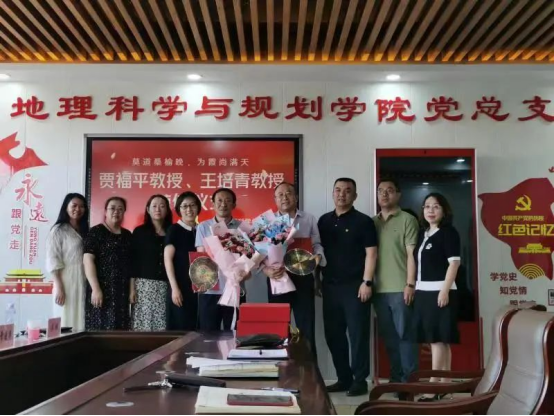 6月30日下午,我校地理科学与规划学院为贾福平、王培青老师举办荣休仪式暨教师党支部“致敬荣休,传承师德”主题党日活动。学校离退休人员工作处处长常晓华、副处长马晓玉、综合服务科科长巩立红,教师工作部(人事处)副部长(副处长)吴炜受邀出席活动。学院全体教师、学生代表参加活动。党总支书记刘晓霞主持荣休仪式。