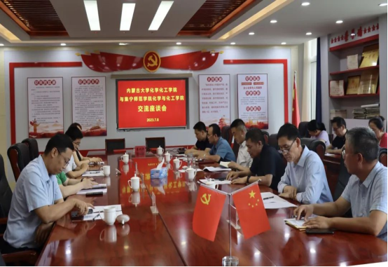 为了加强校际交流合作,7月8日上午,内蒙古大学化学化工学院院长刘健一行到我校交流座谈并举行共建协同创新中心签约仪式。党委副书记、校长刘春,党委委员、副校长李景杰出席,科技处处长董永胜、化学与化工学院班子成员及教师代表参加。