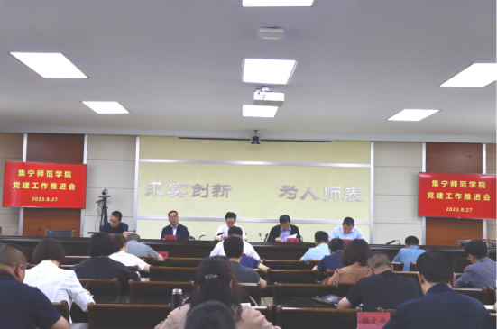 8月27日上午,我校在泉山校区行政楼五楼会议室召开2023年基层党建工作推进会,部署安排学校2023年基层党建工作重点任务。校党委书记朱玉东主持会议并讲话,党委副书记梁政,党委委员、纪委书记赵永军,党委委员、统战部部长赵向军,党委委员、宣传部部长郭英出席会议。附中党委负责人、组织委员,各党总支、直属党支部书记、组织委员,党委组织部、党委宣传部、党委统战部全体成员参加会议。