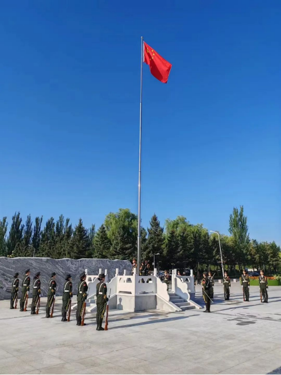 迎着第一缕朝阳,国旗护卫队迈着庄重矫健的步伐缓缓入场,伴随着雄壮嘹亮的《义勇军进行曲》,全体师生庄严肃立,注视着五星红旗冉冉升起,表达对伟大祖国深深的祝福和崇高的敬意。