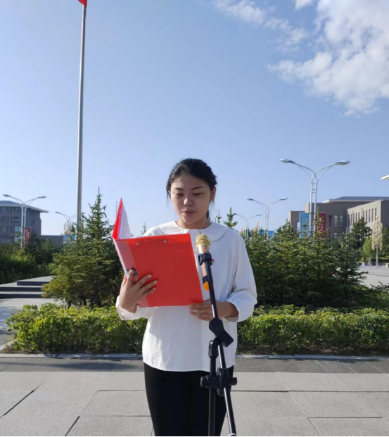 我校地理科学与规划学院2020级地理科学班任鑫美同学和现代服务学院2020级播音与主持艺术一班冯昊宇同学分别以“青春不停步永远跟党走”、“永远跟党走 奋进新征程 跑出新时代青年的最好成绩”为题进行了国旗下的演讲,展现了我校青年学子坚定不移听党话、跟党走,与祖国共奋进,与人民同奋斗的精神风貌,并用实际行动践行了“请党放心强国有我”的青春誓言。