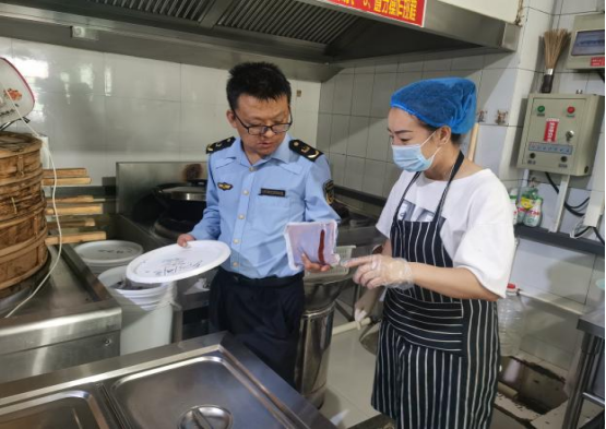 虎山中队队长张志军带队先后到学校餐厅、超市、冷饮店、水果店等地对进货流程、索证索票、食品安全、餐厨货物摆放、环境卫生、消防等情况进行了认真全面地检查,并对检查中发现的问题提出整改意见。