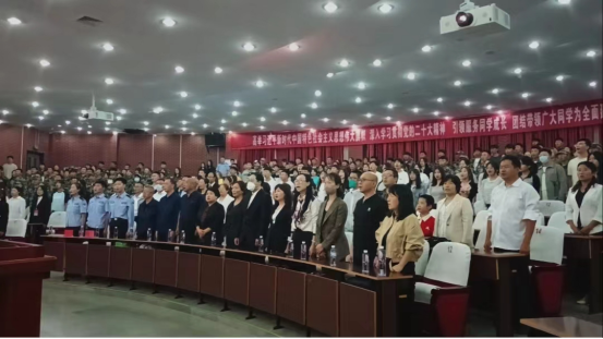 活动伊始,师生齐唱国歌,以庄严的注目礼向祖国致敬。