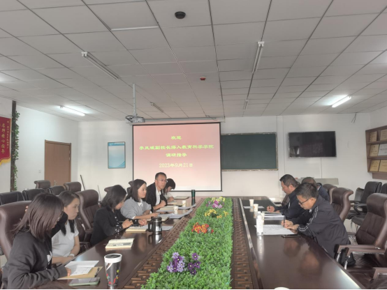 9月21日下午,我校副校长李凤斌到教育科学学院调研指导就业工作并主持召开专题座谈会。招生就业处处长孙振涛、科长刘东升,党政办科长曹晔陪同。教育科学学院班子成员、各教研室(系)主任、全体辅导员和部分班主任参加座谈会。