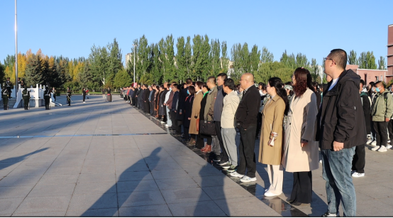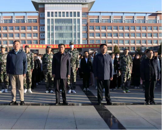 10月9日,我校举办庆祝中华人民共和国成立74周年“同升国旗 同唱国歌”升国旗仪式。校党委书记朱玉东,校党委副书记、校长刘春,副校长李凤斌,党委委员、纪委书记、监察专员赵永军,党委委员、副校长李景杰,党委委员、副校长拓俊杰,党委委员、统战部部长赵向军,党委委员、宣传部部长郭英,各党政教辅部门负责人,各二级学院班子成员、团总支书记、辅导员、班主任及学生代表参加升旗仪式。团委书记王晓瑭、副书记范娟分别主持泉山、白海校区升国旗仪式。