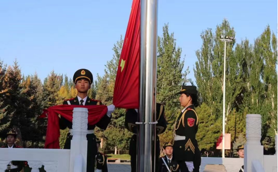 迎着第一缕朝阳,升旗仪式正式开始。校国旗护卫队迈着铿锵有力、整齐矫健的步伐走向升旗台。全体人员神情庄重,面向国旗肃然而立,随着一声“升国旗、奏国歌”的口令,国旗迎风招展,国歌慷慨激昂,衷心祝愿伟大祖国更加繁荣昌盛,祝愿人民生活更加幸福美好。