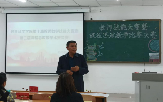 比赛后,学校教学督导员田振国教授对此次赛事进行了精彩点评,对各参赛教师备赛情况、课程思政在整门课程的总体设计思路与实施路径、教学演示等给予了高度评价。