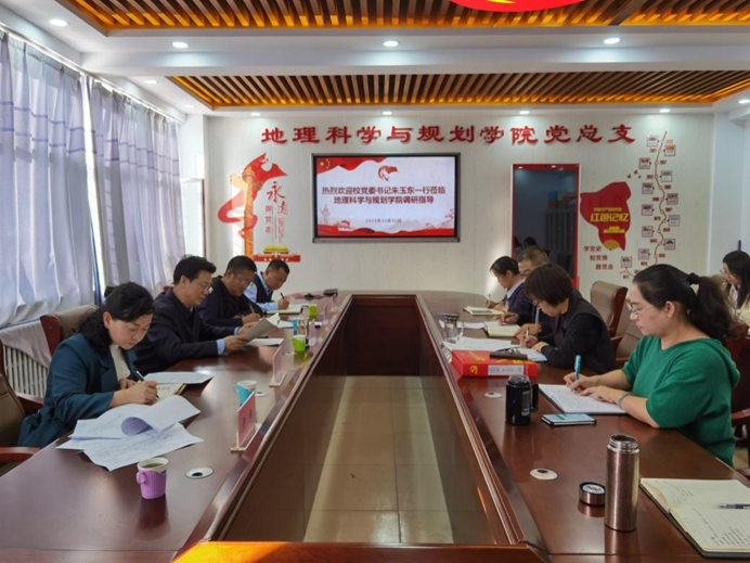 10月30日上午,我校党委书记朱玉东深入地理科学与规划学院调研指导,教学质量监控与评估处处长王燕如、党委组织部副部长杨福贞、党政办公室副主任李海、学生工作部(学生处)副部长(处长)李晓文陪同调研。地理科学与规划学院班子成员、党支部书记、副科级以上干部及教师代表参加会议。