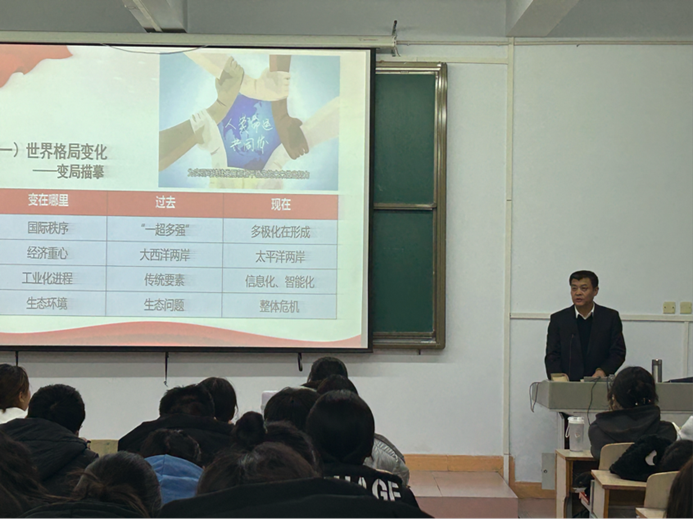 12月13日,我校党委委员、副校长李景杰为2023级生命科学专业、新闻学专业学生讲授“铸牢中华民族共同体意识”课程专题——文明新路与人类命运共同体。
