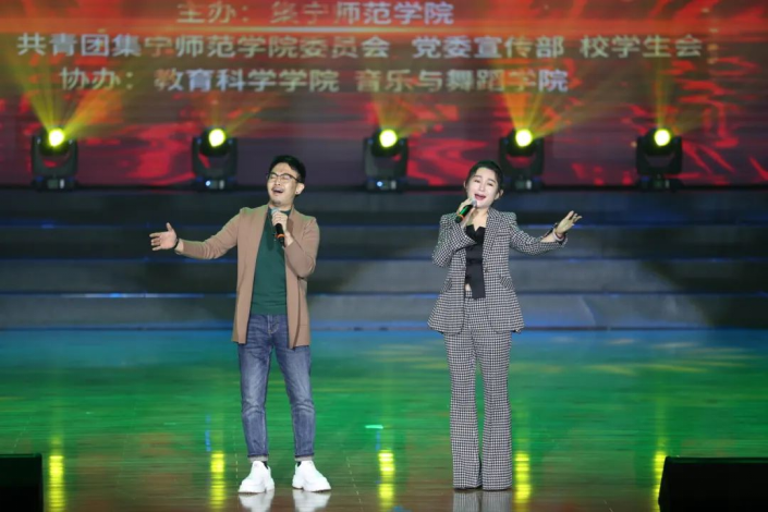 比赛结束之际,评委老师、著名歌手张海霞、刘志鹏为观众带来歌曲《爱在乌兰察布》,将比赛推上新的高潮!评委老师王汉君为整场比赛作了点评,同时也预祝我校选手在自治区校园歌手大赛中能斩获佳绩!