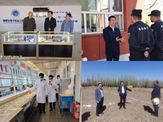 朱玉东一行先后到泉山校区逸夫楼各二级学院、西校门、学生餐厅,泉山、白海两校区植树现场等地,详细了解二级学院值班、校园门卫值守、食堂管理、后勤保障、植树规划及进展情况等。
