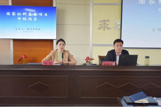 5月9日下午,我校举办了2024年度国家社会科学基金项目申报专题培训会。培训会由校党委委员、副校长拓俊杰教授作专题讲座,科技处副处长尚妤主持,各二级学院教师代表参加。