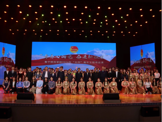 表彰会结束后,开展“青春心向党 奋进新征程”集宁师范学院2024年“五四”青年主题思政课。本次主题思政课通过朗诵、歌唱、舞蹈、情景歌舞剧、器乐合奏等多种文艺形式,全面展现我校团员青年学子感党恩、听党话、跟党走的坚定信念以及新时代青年的家国情怀。