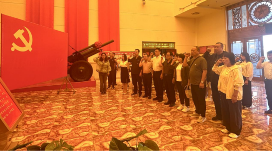 在党旗下,全体党员庄重地举起右手重温入党誓词,表达了为党的革命事业奋斗终身的决心。